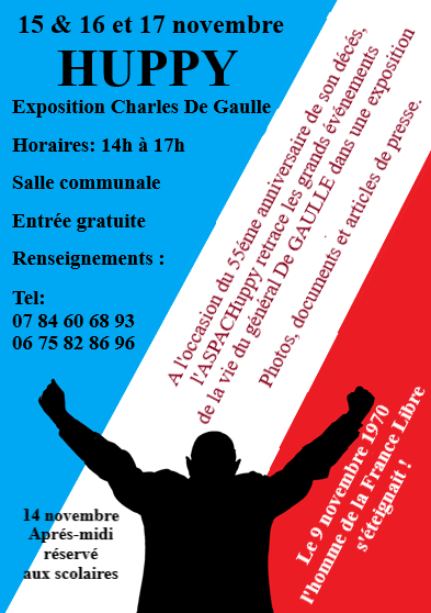 Visite guidée et commentée – Découvrir Huppy avec les yeux de nos visiteurs– Programmation 2025 –À l’occasion du 55e anniversaire de la mort de Charles De Gaulle le 9 novembre 1970, l’ASPACHuppy organise une vaste exposition lors de ses journées. Cette exposition retrace la vie du Général de sa naissance à son décès. Une multitude de documents authentiques, photographies, articles de presse et objets seront exposés. Les trois passages de celui-ci dans la commune de Huppy seront également évoqués et en particulier celui de 1949 avec le Général CHOMEL. Pour marquer cette date anniversaire de sa mort, l’ASPACHuppy édite un ouvrage. Un livret de 42 pages réalisé, maquettes et textes, par le Président de l’ASPACHuppy. Cet ouvrage sera mis en vente lors de ses trois jours et dans lequel vous découvrirez des photos couleur et documents retraçant les trois passages à Huppy. Cinquante exemplaires numérotés et datés à la main seront édités, chacun portant deux tampons de l’ASPACHuppy. Durant les trois jours de l’exposition, 25 unités seront disponibles à la vente. Les 25 unités suivantes seront mises en vente sur commande lors de l’exposition, suite à une réservation au stand de l’ASPACHuppy dans la salle communale. La livraison est prévue dans un délai de deux semaines. Ce livret historique et mémoriel a été imprimé en France par DFS+. Il sera proposé à un coût de 15 euros et sera inclus avec trois cartes postales commémoratives du général à Huppy. La totalité du produit de sa vente sera destinée à l’Association pour la Sauvegarde du Patrimoine Artistique et Culturel de Huppy. L’accès à l’exposition est gratuit ! Nous vous remercions à l’avance pour votre visite, achat ou réservation. Le Président de l’ASPACHuppy